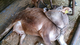 子牛部屋の消毒、屋根のジェット掃除を行っております(^^)